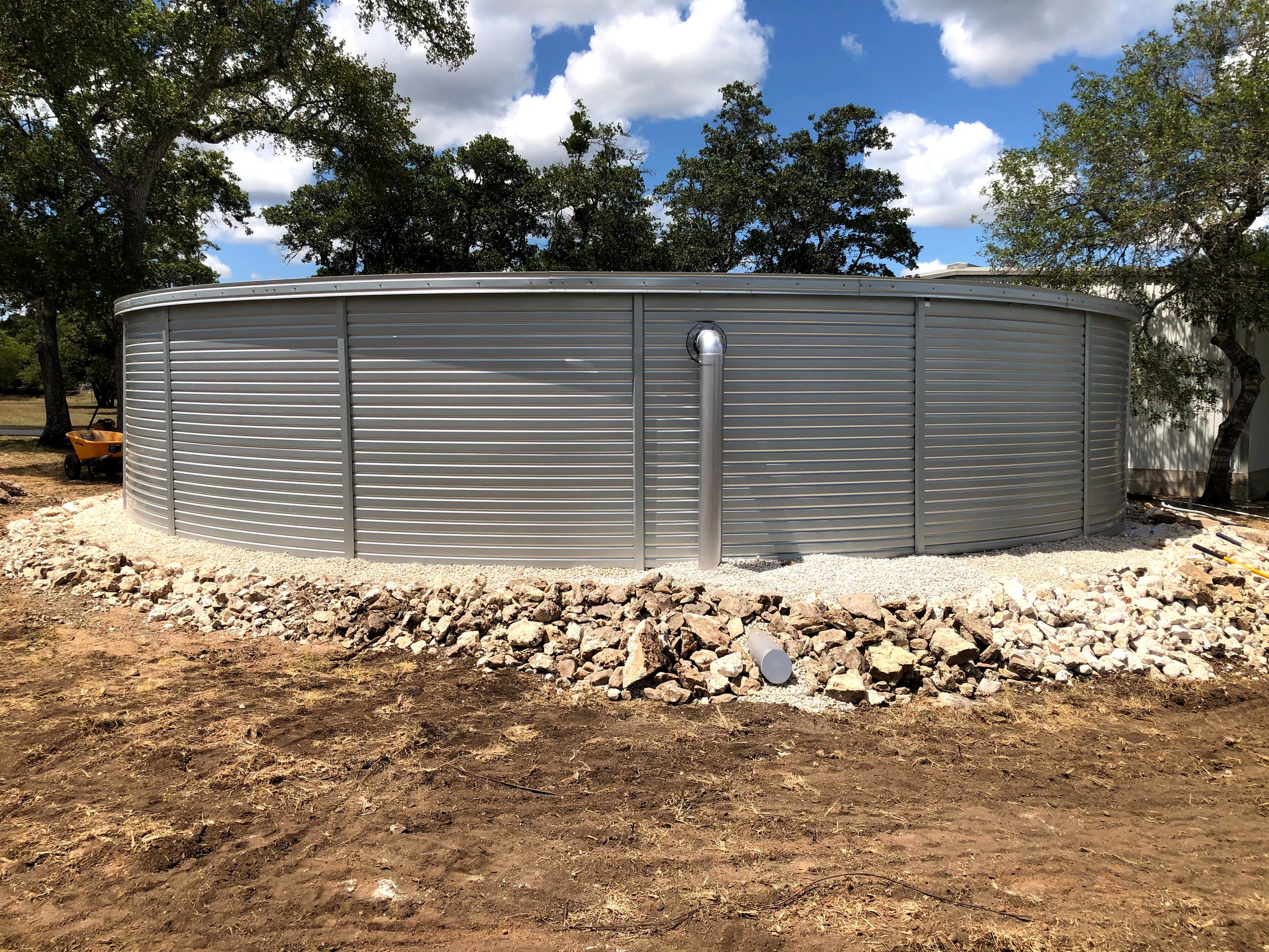 We design and install custom turnkey rainwater harvesting systems to collect from the roof of your home or outbuilding. The rainwater moves through underground conveyance piping to an above-ground storage tank that is constructed onsite. The rainwater is then filtered and UV treated and is suitable for all uses in your home.